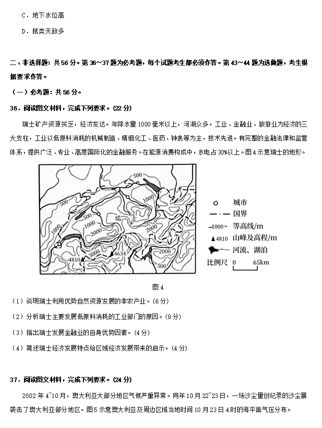 2023年四川高考文综试卷答案