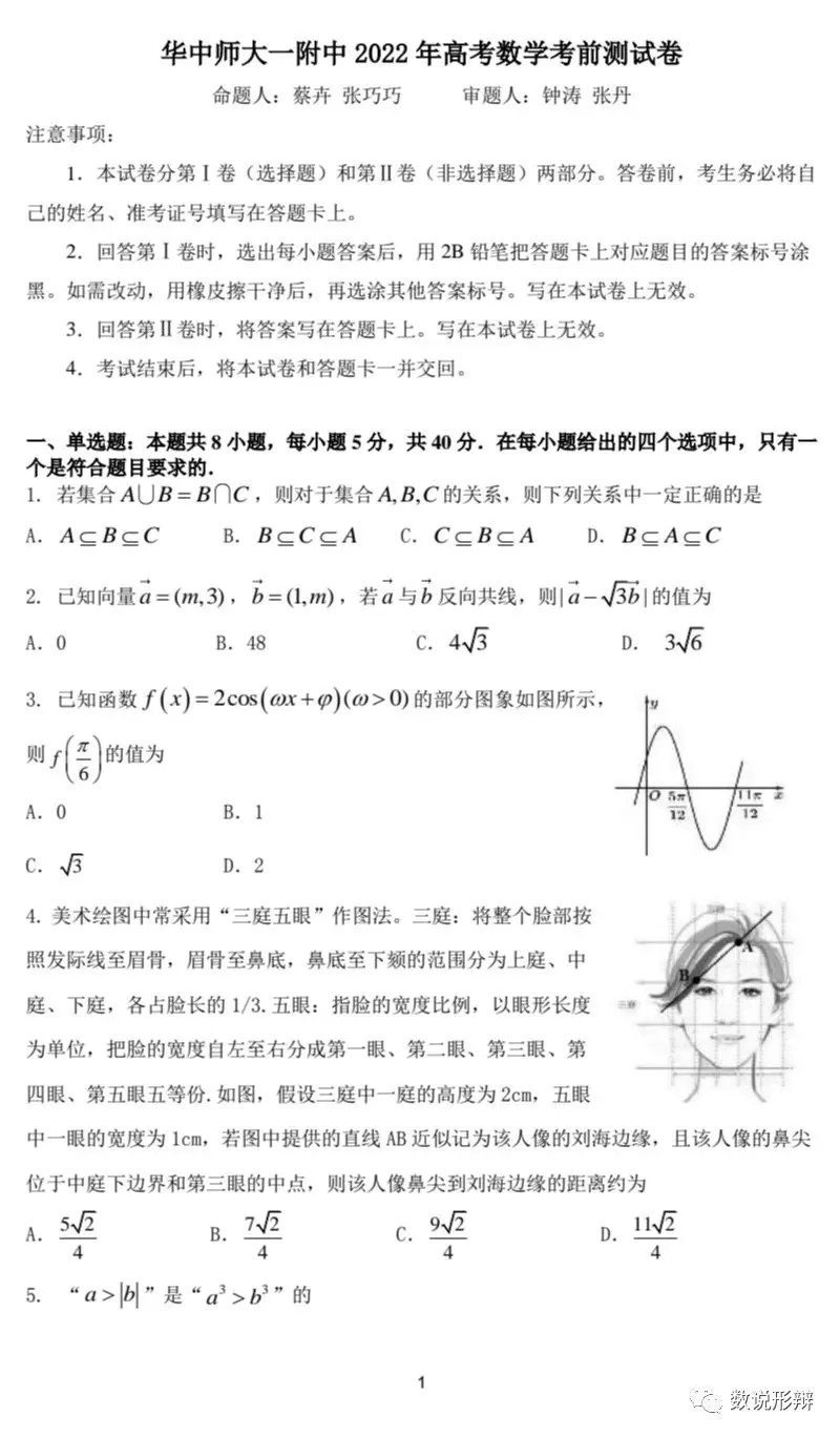 皮学网小编目前收集并整理关于华中师大一附中2023届高考考前演练数学试题及参考答案,更多试题答案请关注皮学网 皮学网小编目前收集并整理关于华中师大一附中2023届高考考前演练数学试题及参考答案,更多试题答案请关注皮学网推荐阅读:1.华中师范大学第一附属中学2023年地理高考测试卷2.2023华中师范大学有哪些专业值得报考的3.华中农业大学是211吗 学校好不好就业4.华中农业大学排名(2022-2023全国最新排名)5.华中科技大学2023年本科招生章程是什么6.华中师范大学2023年外语类保送生招生简章 联系方式