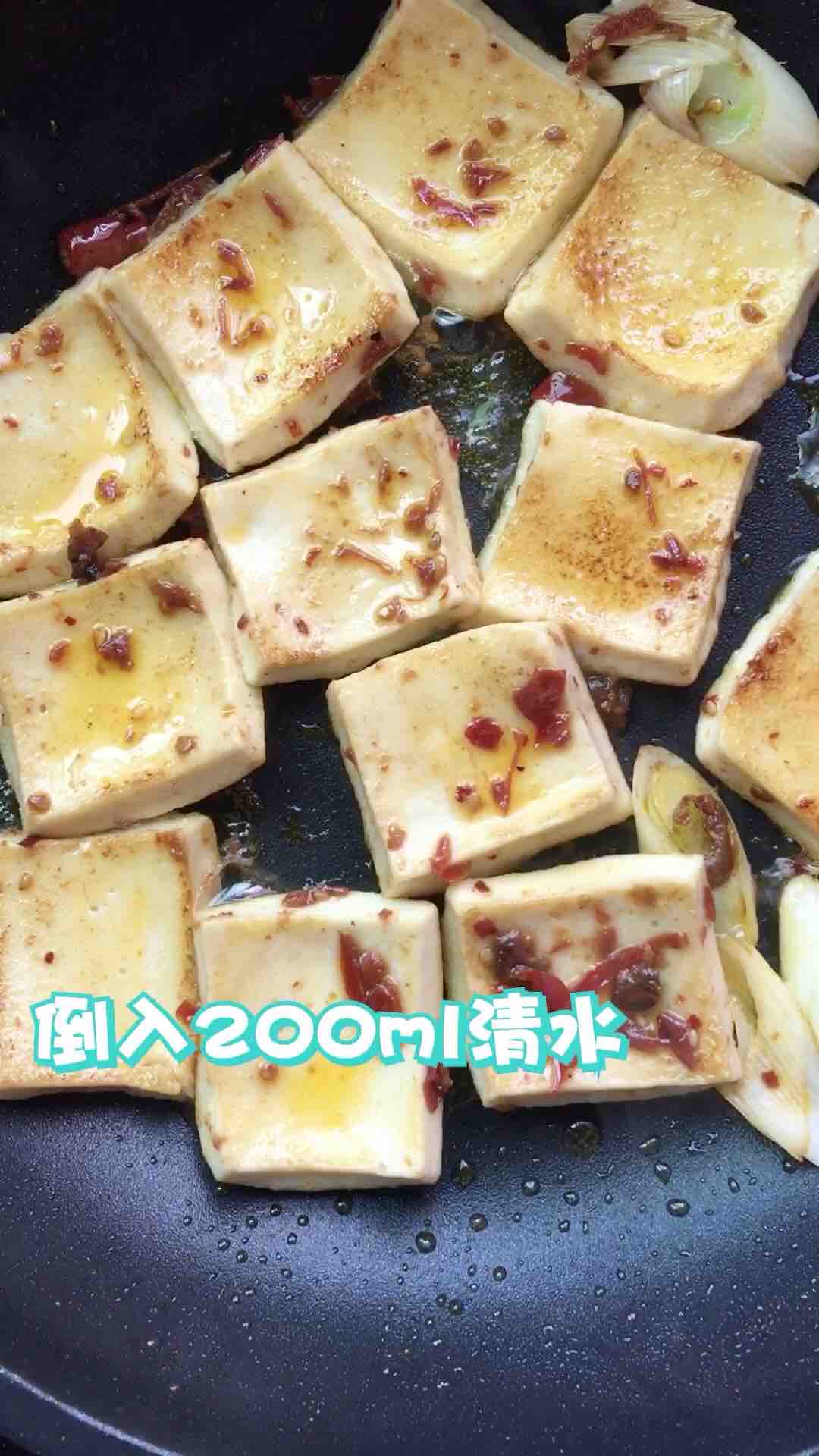 锅内倒油炒香大葱和豆瓣,放豆腐两面煎