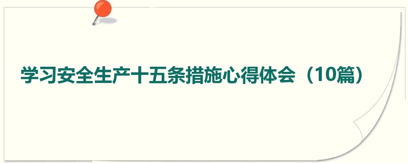 安全是每个人固有的意识,但对安全的范畴和重视程度理解不一。下面是小编为大家整理的学习安全生产十五条措施心得体会(10篇),仅供参考,喜欢可以收藏与分享哟!学习安全生产十五条措施心得体会1有机会参加