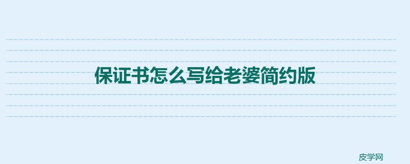 保证书怎么写给老婆简约版第6篇亲爱的老婆:刚认识你的时候我就明白你是我这一生的唯一,我不想说违心的话,我只想说以后你对我说的话,让我做的事我会听的,不能说唯命是从,因为如果我那样的话你也会瞧不起我的对不对我明白你让我做的一切都是为我好,所以我用我这一辈子的生命作承诺,我会像花农爱护花儿一样爱护你的